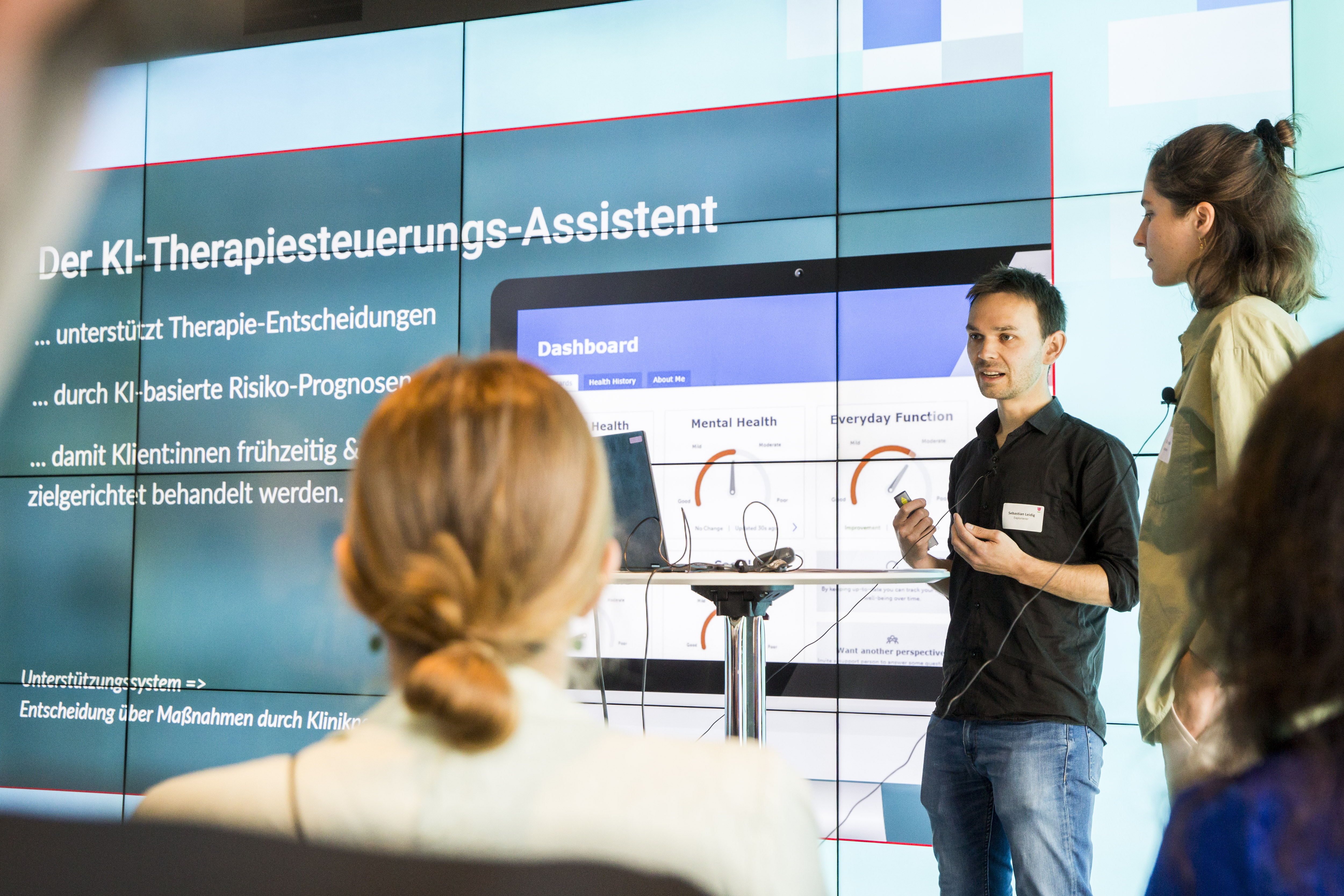 - Der KI-Therapie-Steuerungsassistent, der anhand von Klientendaten die bestmögliche Therapie für Suchterkrankte vorschlagen und Risikofaktoren aufzeigen soll.