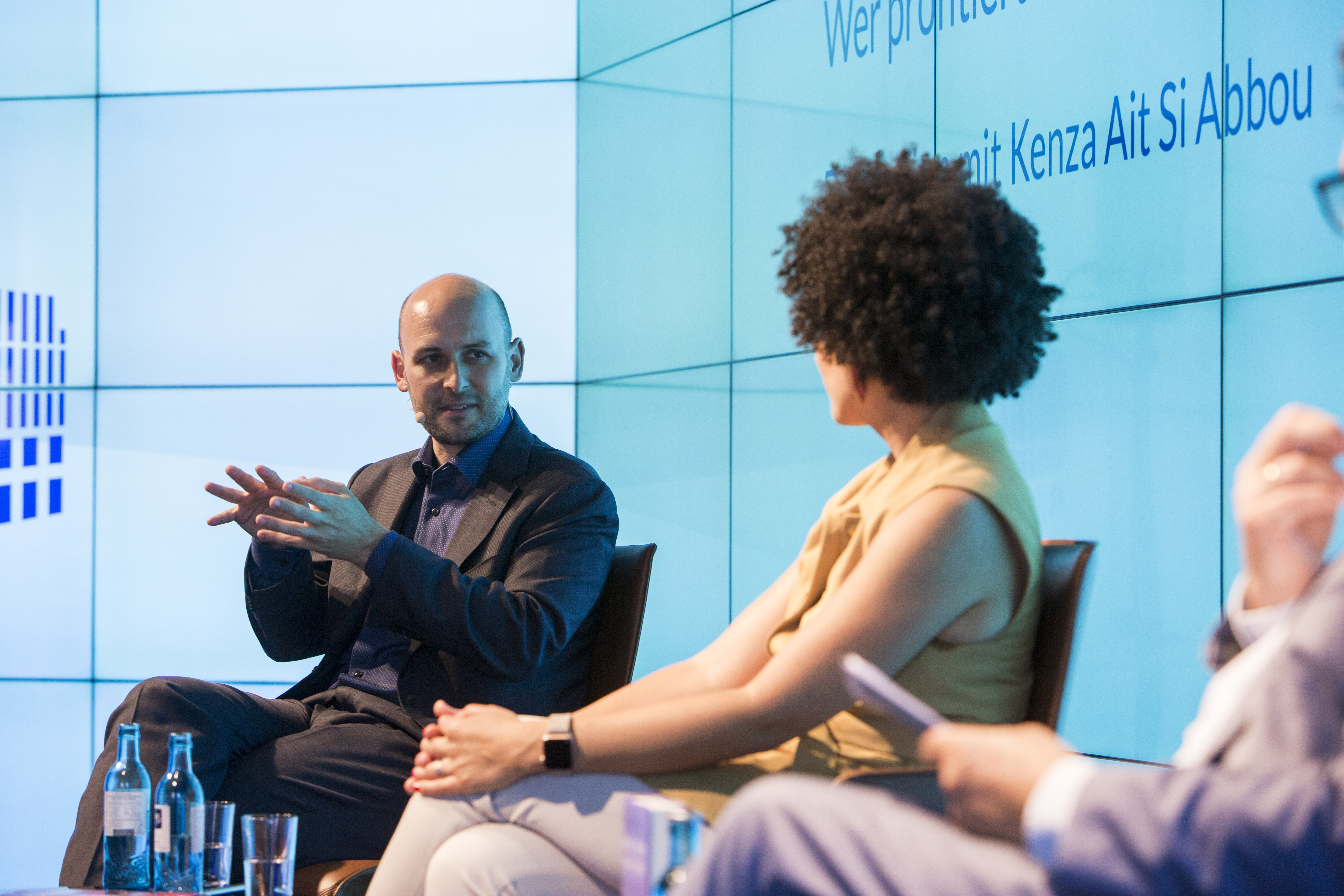 Im Gespräch mit Ralph Müller Eiselt, Direktor des Programms Digitalisierung und Gemeinwohl der Bertelsmann Stiftung und Autor des Buches Wir und die intelligenten Maschinen, wurde die Diskussion dann etwas breiter und nahm die gesellschaftlichen Chancen und Risiken in den Blick, die Künstliche Intelligenz (KI) bietet. Kenza Ait Si Abbou berichtete von ihrem eigenen Werdegang: Aufgewachsen in Marokko entwickelte sie als Ingenieurin ein frühes Interesse an neuronalen Netzen und der Technologie dahinter, welches etwa durch die KI-gestützte Brustkrebserkennung in den frühen 2000er Jahren geweckt wurde. Gepaart mit ihrer Offenheit für Neues, prägte das ihre positive Sichtweise auf die Chancen, die durch die Nutzung der Technologie möglich werden. In Deutschland dagegen würden meist zuerst die Risiken in den Blick genommen und die Potenziale oftmals nachrangig betrachtet.